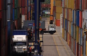 IN THE PHOTO: Trade in Dar Es Salaam, Tanzania: Dar Es Salaam Harbour, a major port in East Africa, loading and unloading shipping containers. This side of the port was sold to a private company from Hong Kong while the other side is still government-owned. CREDIT: FAO/Giuseppe Bizzarri