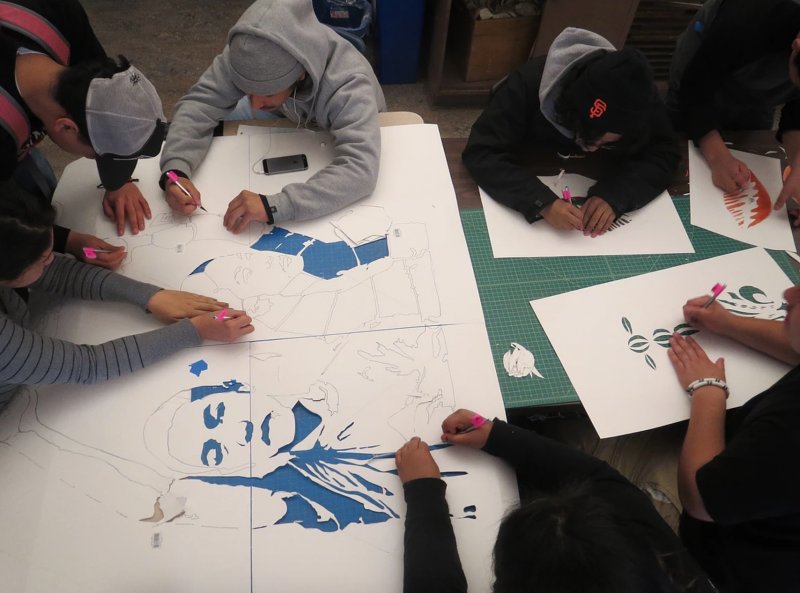 In The Photo: Murals with the students of Leadership High School, San Francisco 2014 Photo Credit: Kate DeCiccio