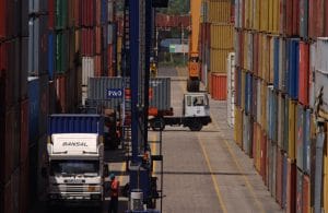 IN THE PHOTO: Trade in Dar Es Salaam, Tanzania: Dar Es Salaam Harbour, a major port in East Africa, loading and unloading shipping containers. This side of the port was sold to a private company from Hong Kong while the other side is still government-owned. CREDIT: FAO/Giuseppe Bizzarri