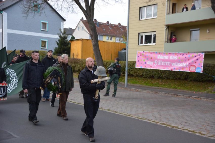 In many places, neo-Nazis hold regular marches through towns and municipalities: one example is an annual march held in the small city of Wunsiedel in Upper Franconia, Germany. Despite the numerous protests by citizens and complaints in front of the German Federal Constitutional Court, neo-Nazis use the town over and over again as “a place of pilgrimage”. Until 2011, the grave of Hitler’s deputy, Rudolf Hess, was located there. These commemorative marches became a firm fixture of the right-wing scene. Local people’s reactions to these demonstrations are well known and expected by those organizing marches. In particular, the idea of a violent escalation is part of the strategy of the neo-Nazi demonstrations.