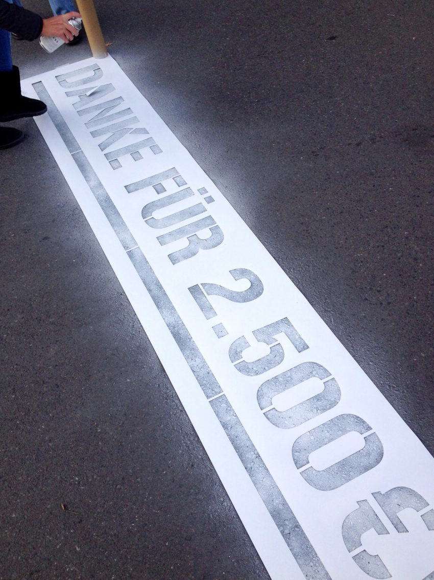 This activity was implemented for the first time on 15 November 2014 in Wunsiedel. For every meter the demonstrators walked, they involuntarily released €10 for EXIT-Germany. The route of the demonstration was decorated with posters and banners which referred ironically to the activity, in order to motivate the demonstrators. For example: “If only the Führer knew.” On the road, we clearly marked the amounts that were raised at each respective stage. Various media outlets reported about the protest as well. The originally-provided donation sum of €10,000 was almost doubled during the march. After Wunsiedel, other cities in Germany, Sweden and Norway followed the same principle. Now, more than €47,000 has been donated, on projects for refugees and for right-wing extremism prevention.