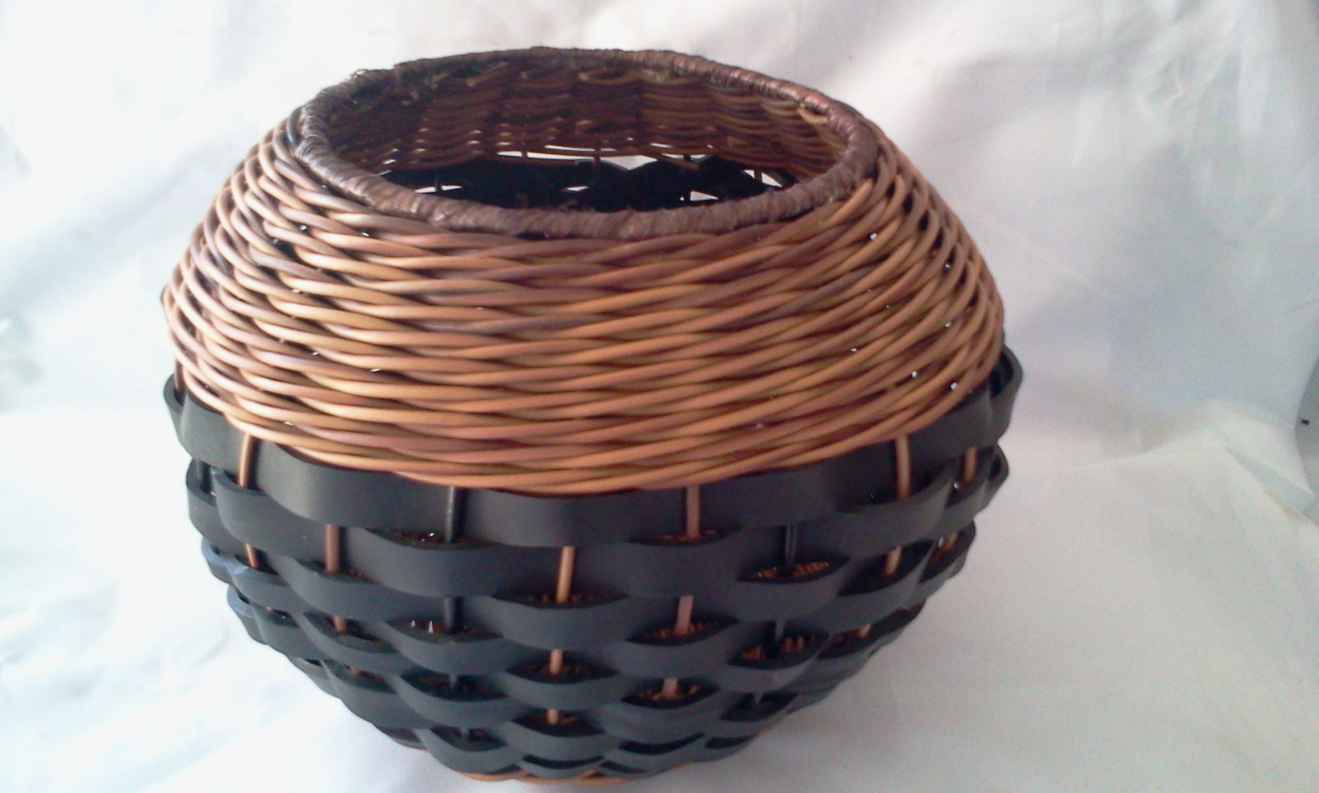We use: Tyre tubes, tyres, pvc billboards, video cassette tapes, old cardboard and whatever other usable waste materials I can get my hands on.