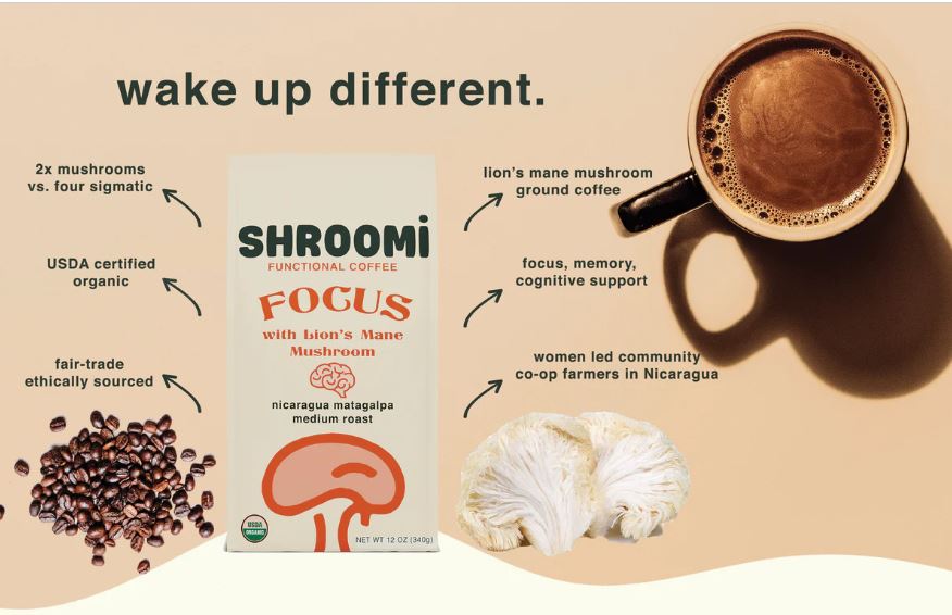 Shroomi is is an organic functional mushroom company based in California. It produces nutrient-dense mushroom foods that taste great and might have potential health benefits. One of the most interesting products from Shroomi is an organic functional coffee. This coffee contains a blend from Nicaragua mixed with 16,000mg of lion’s mane, reishi, and Chaga in every coffee bag. According to Shroomi, this coffee could benefit the most those that need help focusing.
