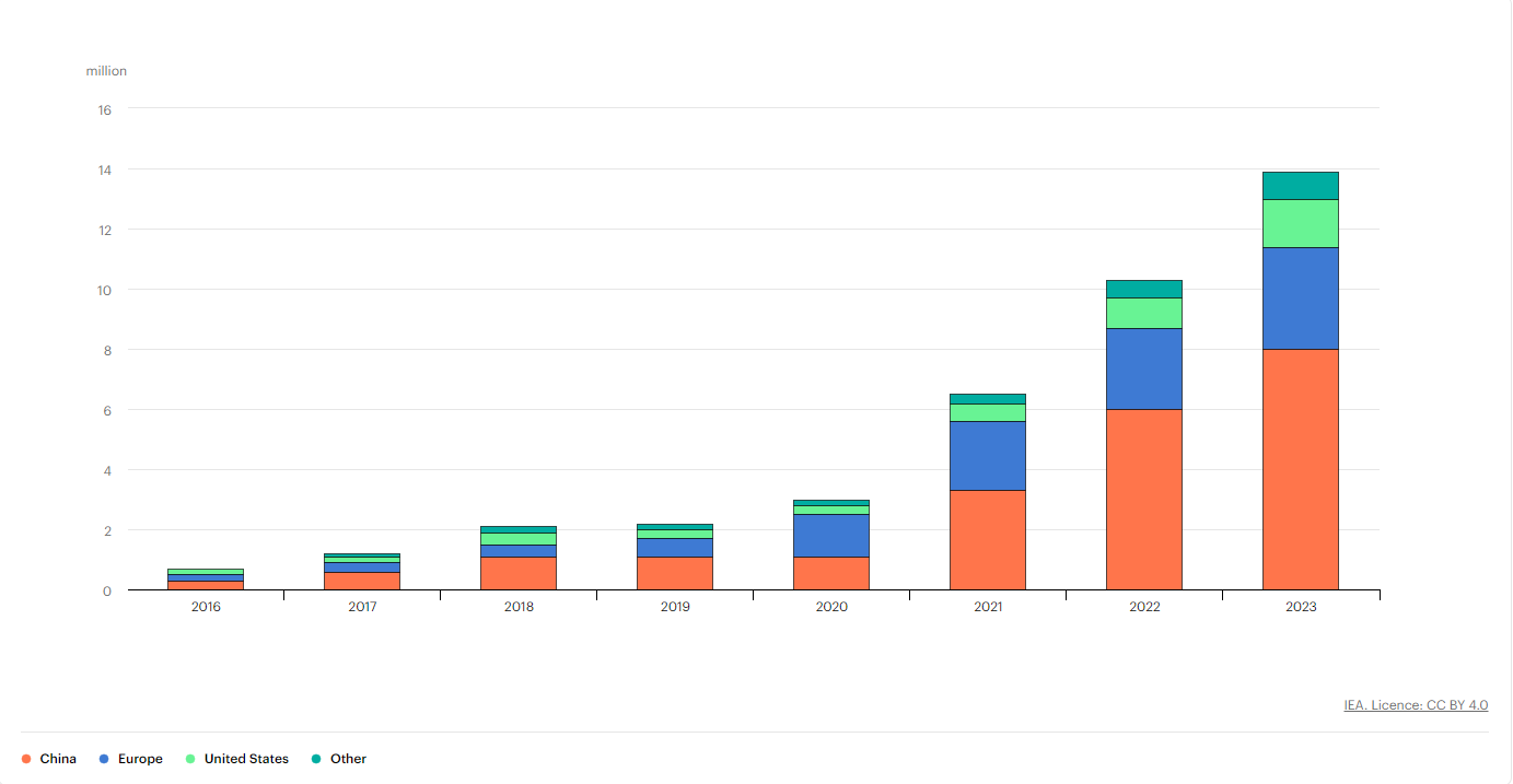 As stated in the IEA report “for example, nearly 95% of global electric car sales in 2022 took place in China, the United States and Europe.”