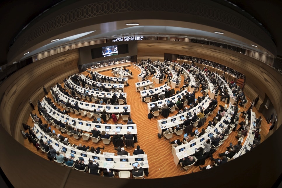 In the photo: Towards a global compact on refugees – Formal consultations on the global compact on refugees. Photo Credit: © UNHCR/Jean Marc Ferré