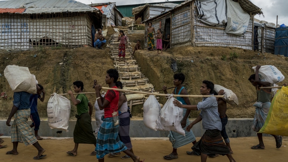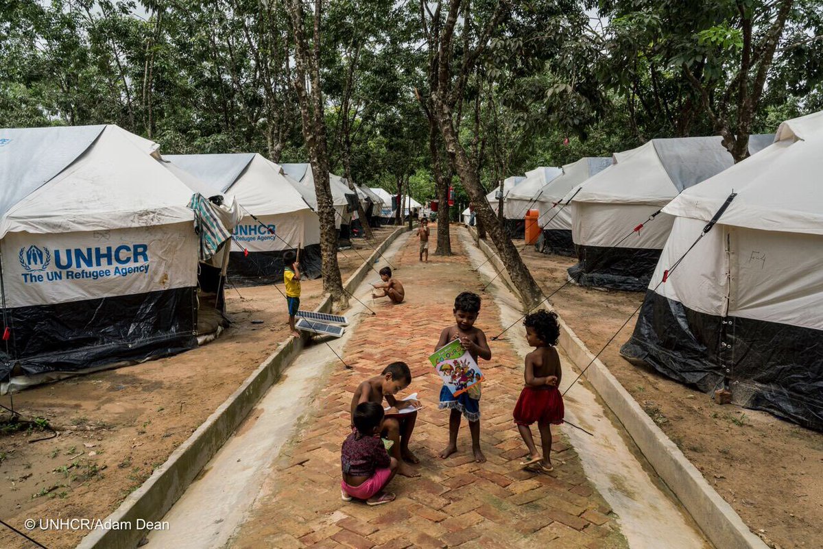 In the photo: Bangladesh. New arrivals at UNHCR Transit Centre – The Story: Children from newly arrived Rohingya families from Myanmar take shelter in the UNHCR Transit Centre in Kutupalong camp, using the new Refugee Housing Units. ; With 900,000 Rohingya refugees in Bangladesh constituting more than 200,000 households, the settlements in Cox’s Bazar are among the largest in the world. Over a year since the largest wave of displacement in 2017, UNHCR continues to respond to the urgent and ongoing humanitarian needs in the camps in Cox’s Bazar, including Kutupalong, Nayapara and Ukhia. Helping provide adequate shelter, clean water, sanitation, alternative sustainable fuel, protection for vulnerable people and survivors of sexual and gender-based violence are among the priorities. Almost 700,000 Rohingya refugees fled Myanmar, seeking safety in Bangladesh in 2017. Photo Credit: © UNHCR/Roger Arnold
