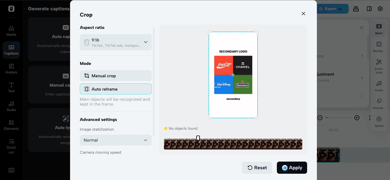 Think about it: the same promo clip that works brilliantly as a horizontal Facebook ad probably needs a snappy vertical version for Stories. Your stylish widescreen brand reel? It’s dying to become Pinterest video pins and swipe-worthy Reels. But no team wants to start from scratch for each channel.