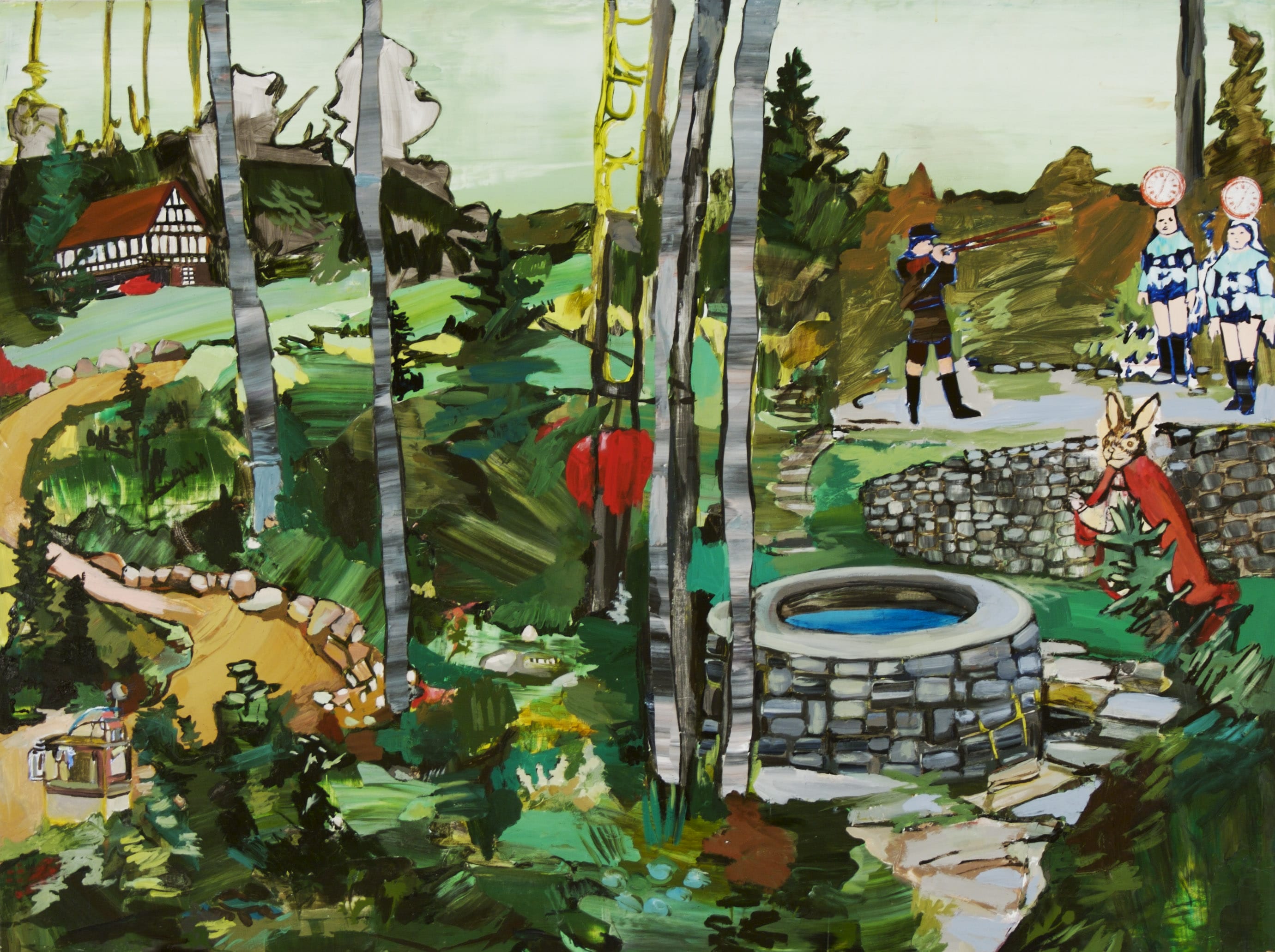 In the photo: The Assasination of the Two Clocks, 2009, Acrylic and Oil on Wood, 30 x 40 Inches