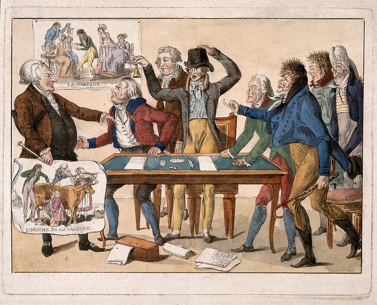 Editor’s Note: The opinions expressed here by Impakter.com columnists are their own, not those of Impakter.com. — Featured Image: Seven members of the French committee on vaccination rail at Tapp, a health officer in the 7th arrondissement of Paris in the late 1790s, who resisted the new discovery. When asked by the mayor to look into introducing vaccination into that part of the city, he launched an unrestrained attack on what he saw as “une pure charlatannerie”. Colored etching, c 1800, Wellcome Library Collection (CC 4.0)