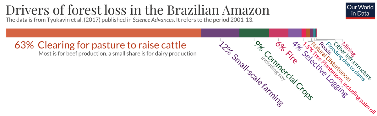 A key argument in support of the vegan diet is that 80% of Amazon rainforest deforestation is the result of felling for cattle ranches, releasing large quantities of carbon into the atmosphere and deeply affecting biodiversity.