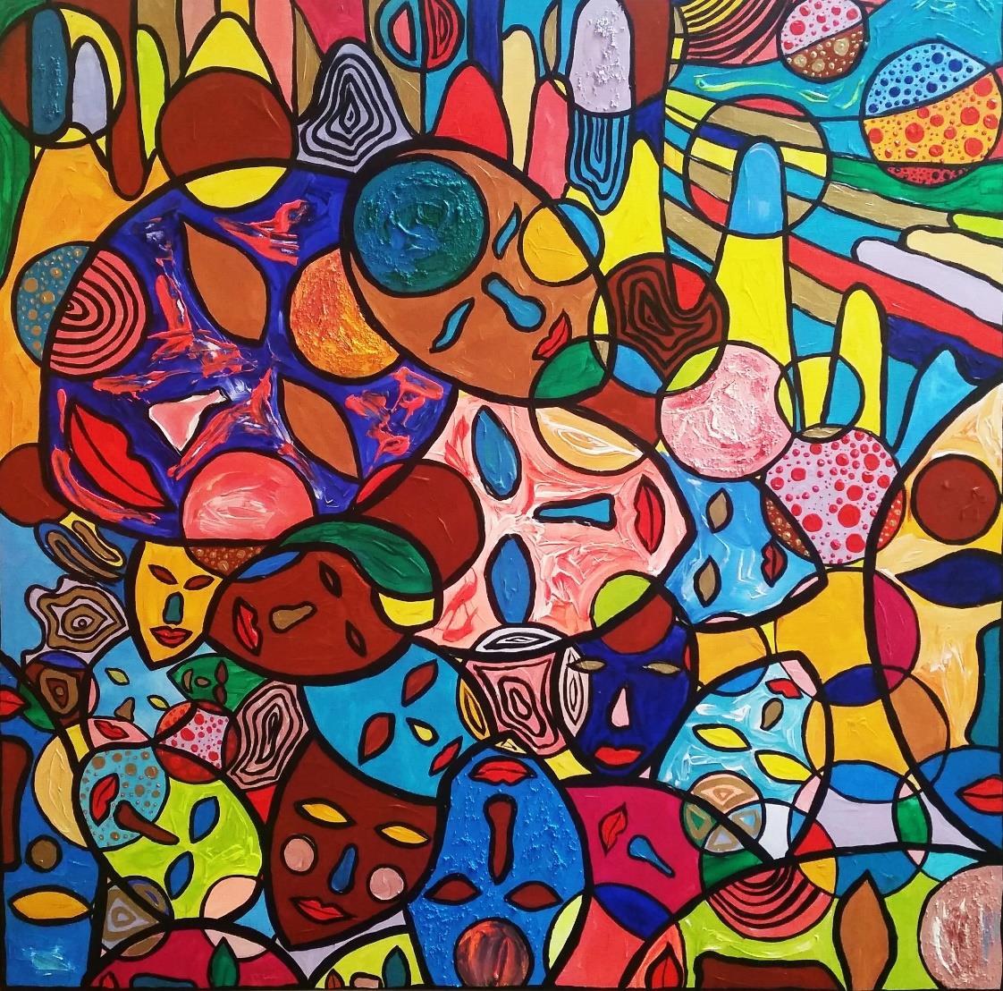 C.B.: These last two years I was painting too much in the first style with ornaments and colorful shapes. Besides that, I also realized that I depicted faces quite often, which might be probably explained with a new phase in my life when I finished my Ph.D. study and started working and meeting new people. I love combining faces and colorful ornaments and create an infusion of nature and faces.