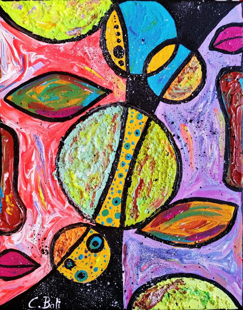 C.B.: Well, at the beginning of my artistic path, I was trying almost everything: I was painting only faces, doing sketches, working with acrylic colors and drawing without pencils as well. I tried different styles, however later I realized that my soul wants more abstract paintings with bright acrylic colors and glass.