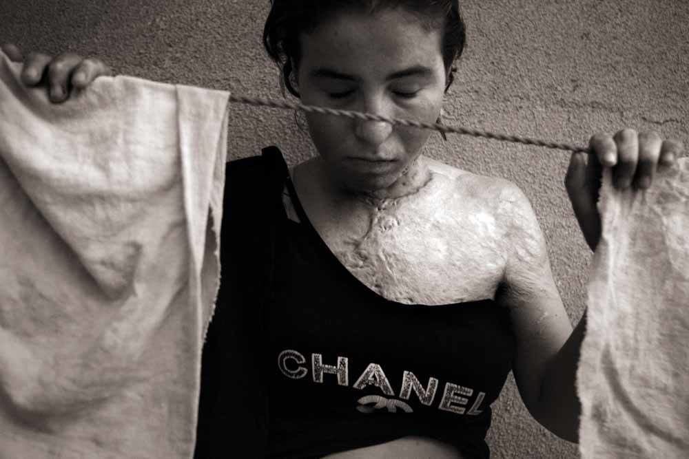 In The Photo: “I thought, this is my death. I felt no pain.” Iman Eaziden Bakr, 17, raised her chin defiantly, her eyes glistening in the dim light. “I felt like a chicken being roasted. I will never forget the torture of my skin; it was so painful—as if my insides were being exposed.” Her tea had long ago gone cold as she recounted the day on Jan. 14, 2007 when she poured kerosene on her body and set herself on fire. She had hoped that her act of sacrifice would bring peace to her family whom she described as always fighting. Photo Credit: cheryldiazmeyer.com