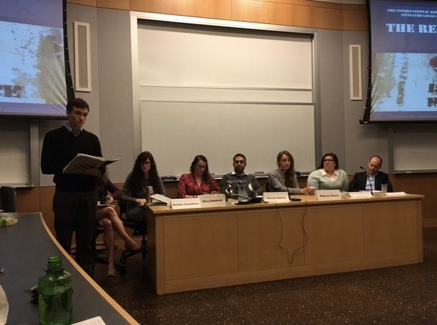 In the Photo: Members of IRAP Berkeley, including Schultheis, Dahdouh, and Chraim, speak on a panel about the chapter’s trip to Beirut. Photo Credit: IRAP Berkeley Chapter