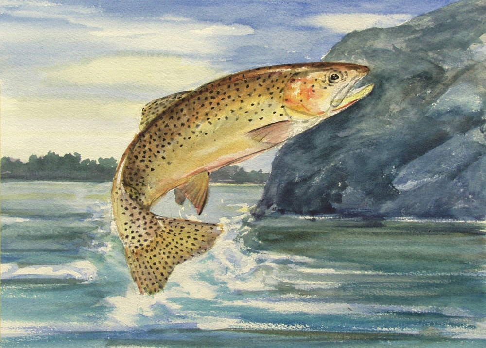 Up from the darkness lept the huge Brown Trout, twirling on its tail as if mocking us puny humans. I could see a reddish-brown fin as it arched out of the water, only to dive back down to its dark dwelling, flexing every arrogant muscle, a vision of something vital and deep and overwhelmingly strange.