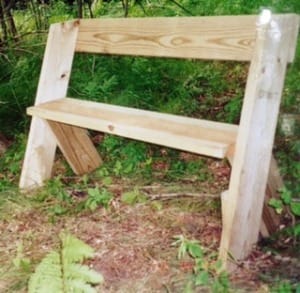 Years ago, I admired a bench some friends had built near their cottage, and they gave me the plans. It turned out to be a meditation bench designed by Aldo Leopold, an American scientist and philosopher, professor at Wisconsin University and author of A Sand County Almanac (1949). The bench holds your back at just the right angle – not straight up or lolling – perfect for sitting and staring.