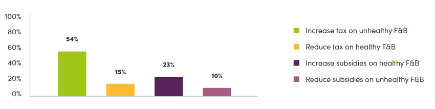Despite the evidence of impact, food taxes and subsidies are vastly underutilized. Only 39 countries report using fiscal policies to improve dietary intake (Figure 1), and only 30 jurisdictions have sugar-sweetened beverage taxes (Figure 2).