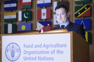 IN THE PHOTO: 12 December 2017, Rome Italy – Metrics for CSA: Outcomes of the GACSA June 2017 Workshop by Matthew Reddy, Director of CSA, World Business Council for Sustainable Development (WBCSD). Plenary Session, Global Alliance for Climate-Smart Agriculture (GACSA) 12-13 December, FAO headquarters. CREDIT: FAO/Giuseppe Carotenu