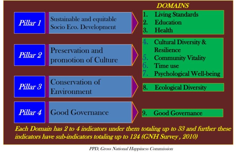 Bhutan is widely known as the creator of the “Gross National Happiness Index”, with GNH replacing Gross National Product as its priority indicator. A single number index was developed with the help of Oxford University scholars from 33 indicators under nine domains. Despite continuing high levels of poverty, Bhutan is a country found among the top in terms of “happiness” – much higher than its level of poverty would predict and systematically divergent from the ranking given to it by the UN-founded World Happiness Index (that was inspired by Bhutan’s GNH). No doubt as a result of a different definition of happiness.