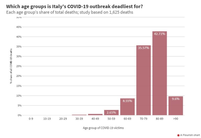 For example, the epicenter of the pandemic in Italy this Spring was the Lombardy region and it was found that the elderly (and immuno-compromised) were overwhelmingly the most likely to die. As this study shows: