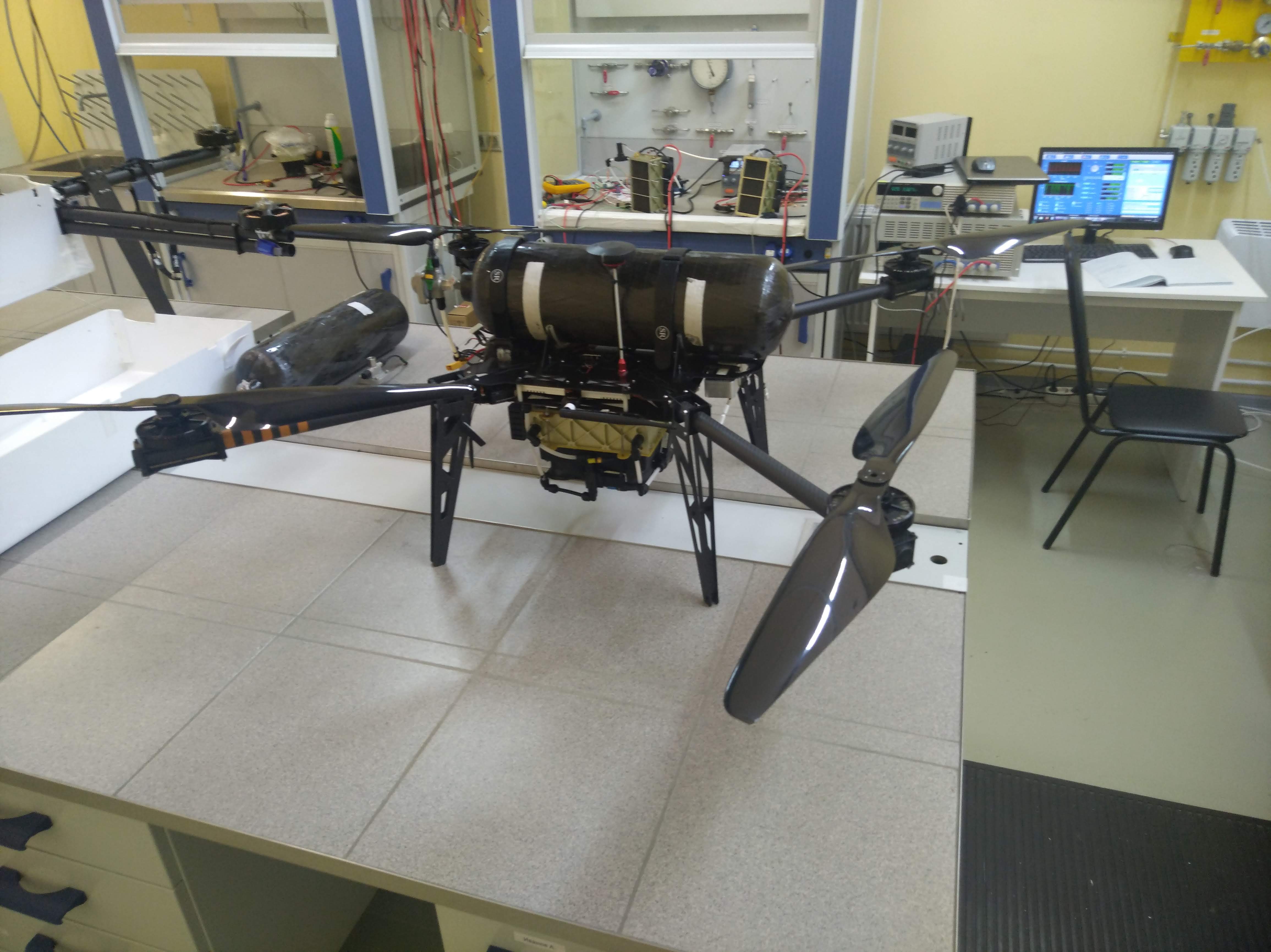 In the photo: Hydrogen-powered drone is standing on the work bench Photo credit: Evgeny Bazhan