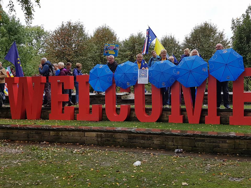 IN THE PHOTO: Members of Bremain in Manchester – Stop Brexit March on the Tory Party Conference 2017. PHOTO CREDIT: Susan Wilson – Bremain.
