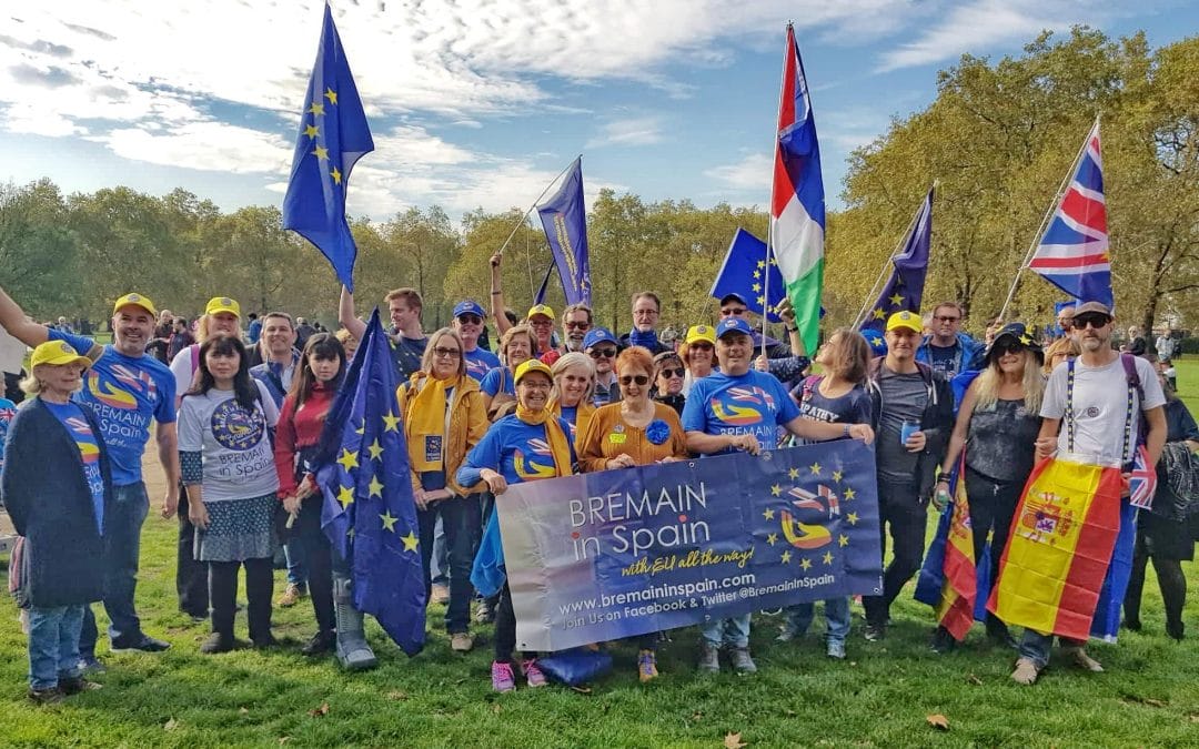 IN THE PHOTO: Bremain members at the People’s Vote March to demand a vote on the final Brexit Deal. PHOTO CREDIT: Susan Wilson – Bremain.