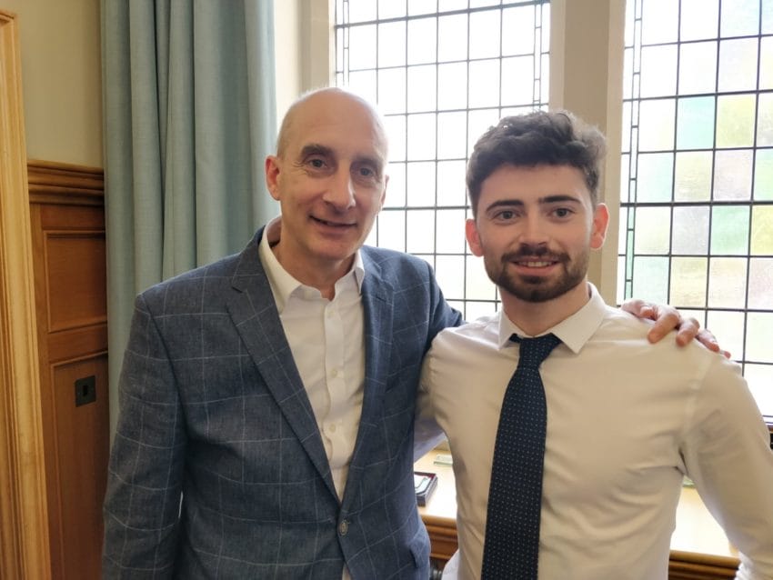 IN THE PHOTO: Christopher McCaffrey, one of the members of OFOCNI with Lord Adonis, one the most famous anti-Brexit activist. PHOTO CREDIT: Our Future Our Choice NI.