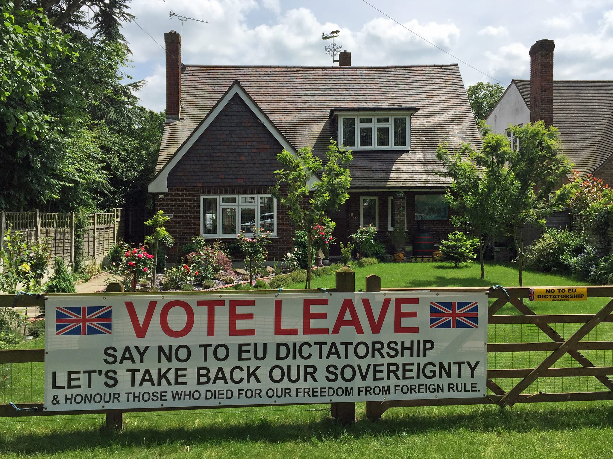 IN THE PHOTO: Leave Supporters Banner. PHOTO CREDIT: Diamond Geezer / Flickr