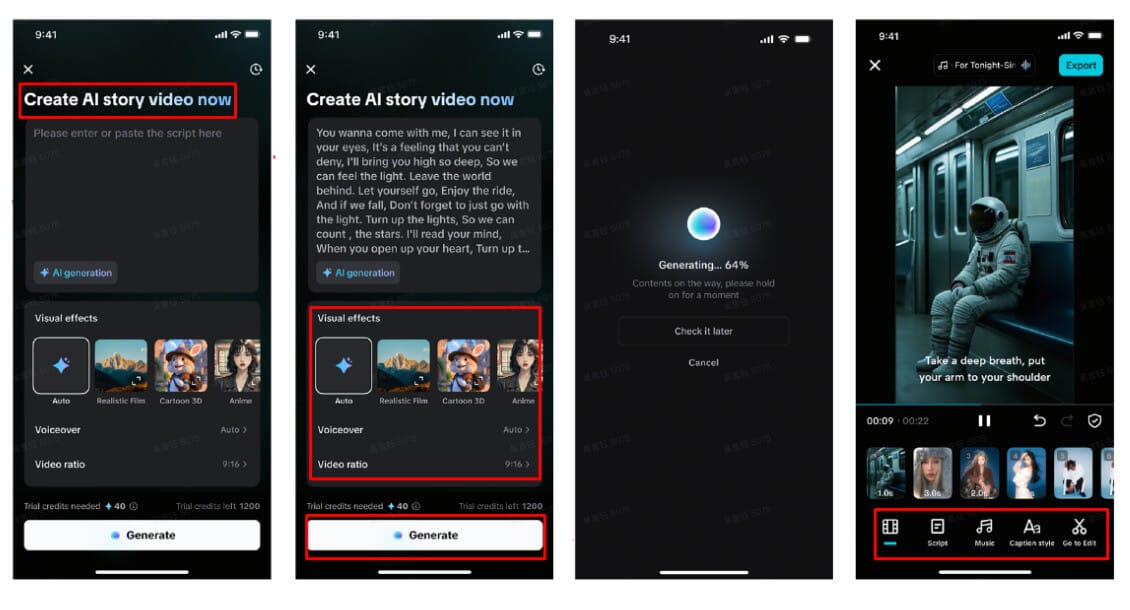 When the video is ready, enhance it with the “Music” tab using subtle background tunes. You can also polish your captions via the “Caption style” tab by adding professional fonts and animation. Need more customization? Tap “Go to Edit” for deeper personalization.