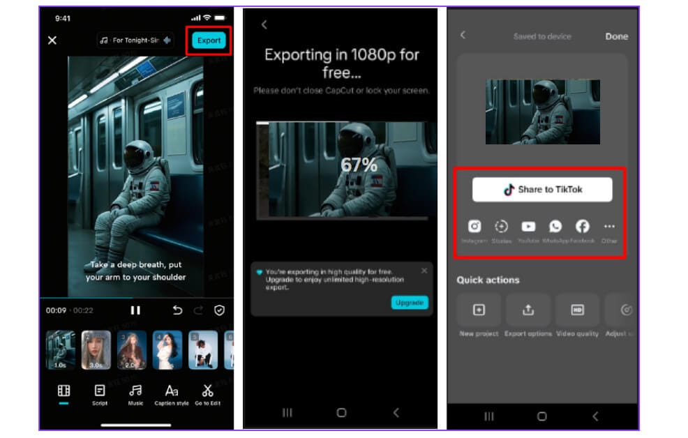 Check your video on both mobile devices and desktops before sharing. The CapCut App AI video maker also enables you to export videos in various formats, which allows you to adjust each platform accordingly. For example, LinkedIn should be square, whereas job-hunting mobile-first networks should be vertical.