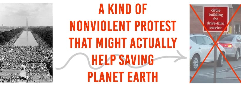 Maybe, at this point, the huge numbers I just mentioned made you forget the enormous sacrifice the Bishnois made to save their trees. Our small sacrifices of getting out of the car and walking inside a place of business could be the nonviolent protest the United States needs to prompt politicians and corporations to take the massive action it’ll take to save the planet.