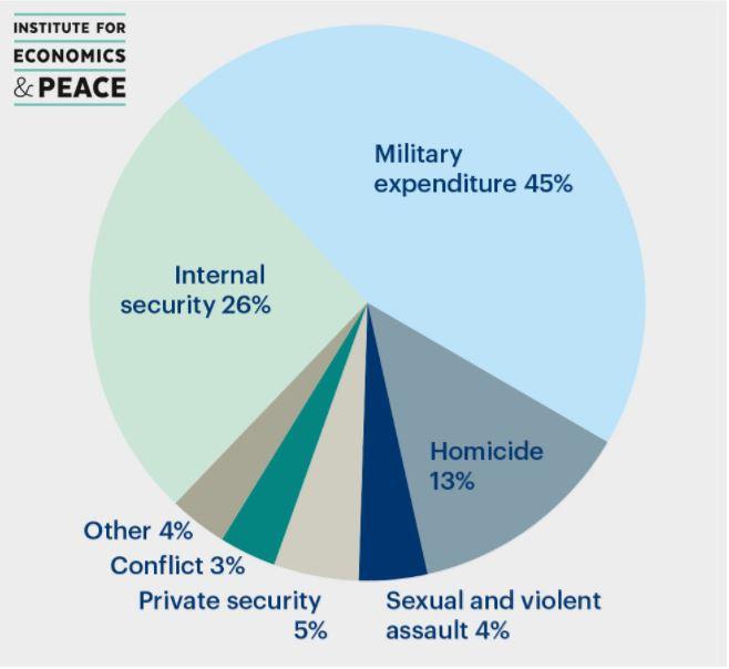 In the diagram by IEP we see the breakdown of the economic impact of violence 2015.