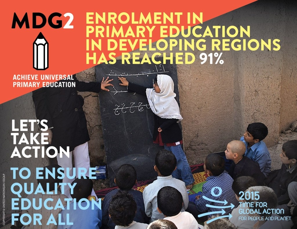 Consider the situation. Five years ago, as the Millennium Development Goals (2000-2015) were concluding, it looked like the goal of achieving universal education, a.k.a. MDG #2, was very close, with enrollment in primary education reaching 91% globally. But that number hid a devastating reality: Too many children in school weren’t actually learning and by the time they graduated, couldn’t read or write. And children out of school risked remaining permanently out, caught in the trap of living in conflict areas and suffering from the growing urban-rural divide.