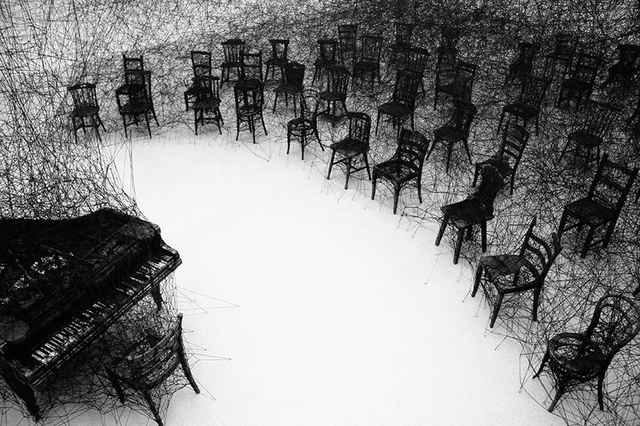 You can be surprised, you can get emotional, angry, astonished, just looking at a filled room, without knowing why. Often the meaning of it is a visual mystery. Beds, pillows, clothes, suitcases, threads, shoes, when they move in an environment, handled by an artist, they develop their own stories. Sometimes the artist is a part of this story, engaged in the installation. Sometimes the artist is just behind this story. Chiharu Shiota, Berlin-based artist and performer, exhibits worldwide her touching art. Born in Japan, she’s been trained during the late 90’s by Marina Abramović in a German art school. The Orient, the German rigor and the guidance of one of the greatest contemporary artist have created an unique mix. Shiota’s art is humble, yet majestic.