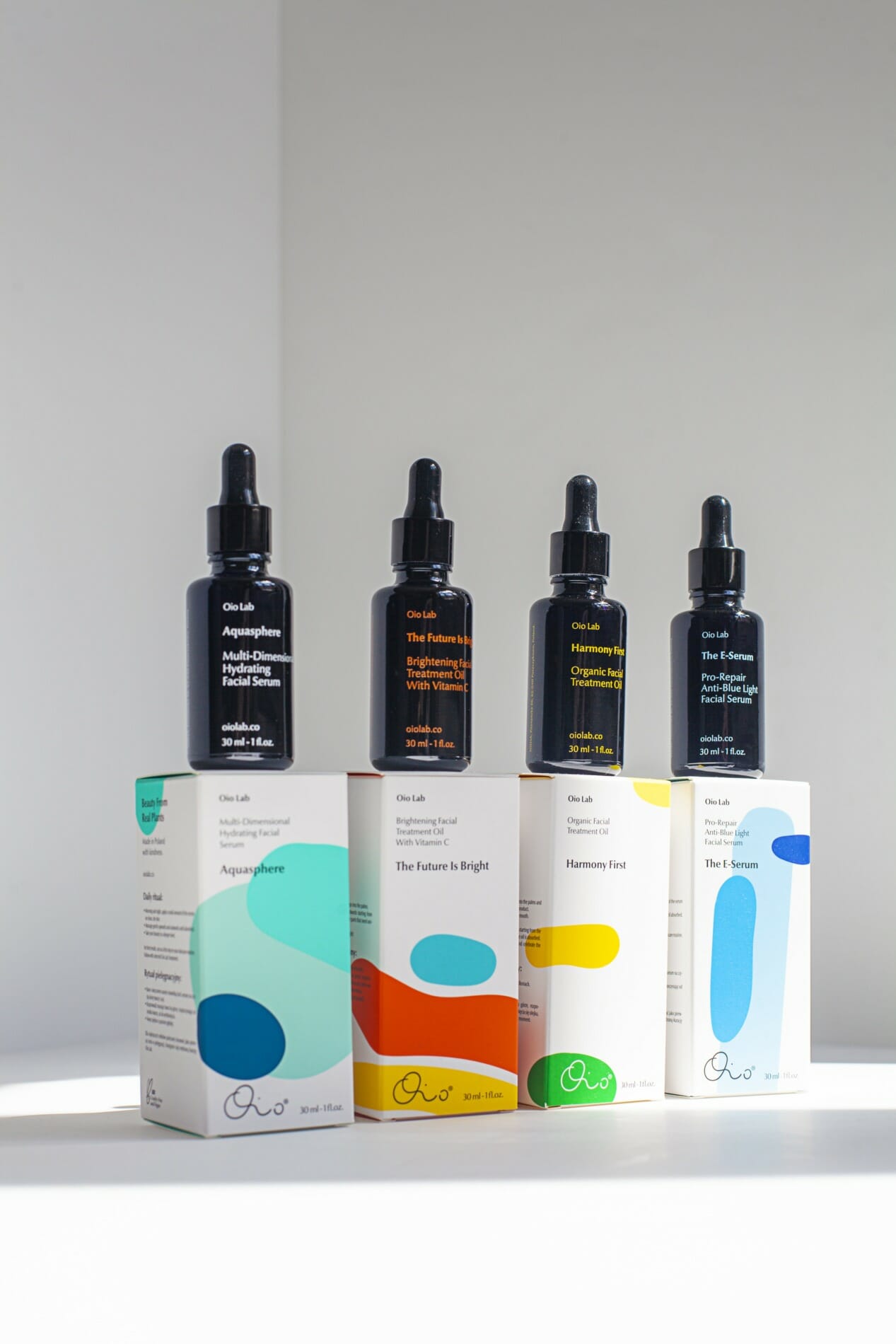 At Oio Lab we are passionate about switching to greener solutions whenever possible. However, we are not producing mass market skincare, and this is where change is needed the most. This is one of the reasons why we developed another brand, UKVIAT, a natural skincare solution with simpler formulations that could be sold at a lower price point. The aim is to spread our values and hopefully be able to act on a greater scale one day. At UKVIAT every product supports a different environmental cause. For example, the blue serum helps protect marine ecosystems, while the yellow one supports the repopulation of wild bees. Taking care of our planet is part of the brand DNA.