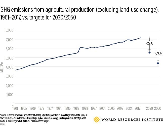 And one important overall indicator — total GHG emissions from agricultural production — is still moving in the wrong direction.