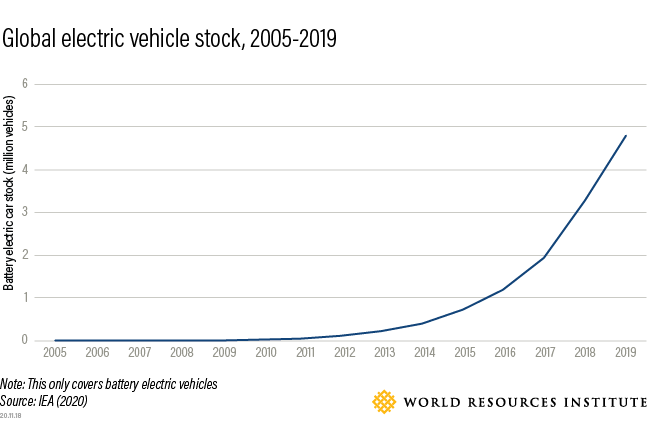 EVs currently make up a small percentage — roughly 1% — of the global passenger vehicle stock. But they’ve grown rapidly over the past five years and will likely accelerate further. This expansion is especially pronounced in countries with supportive policies, like China and Norway. In the latter, EVs made up 56% of new vehicles and 13% of the total vehicle stock in 2019.