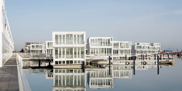 First, they’re doing this with physical solutions, for example, by building floating houses and houses on stilts; some seventy such houses have recently been set afloat in the town of IJburg,a residential area east of Amsterdam. Many look attractively futuristic: