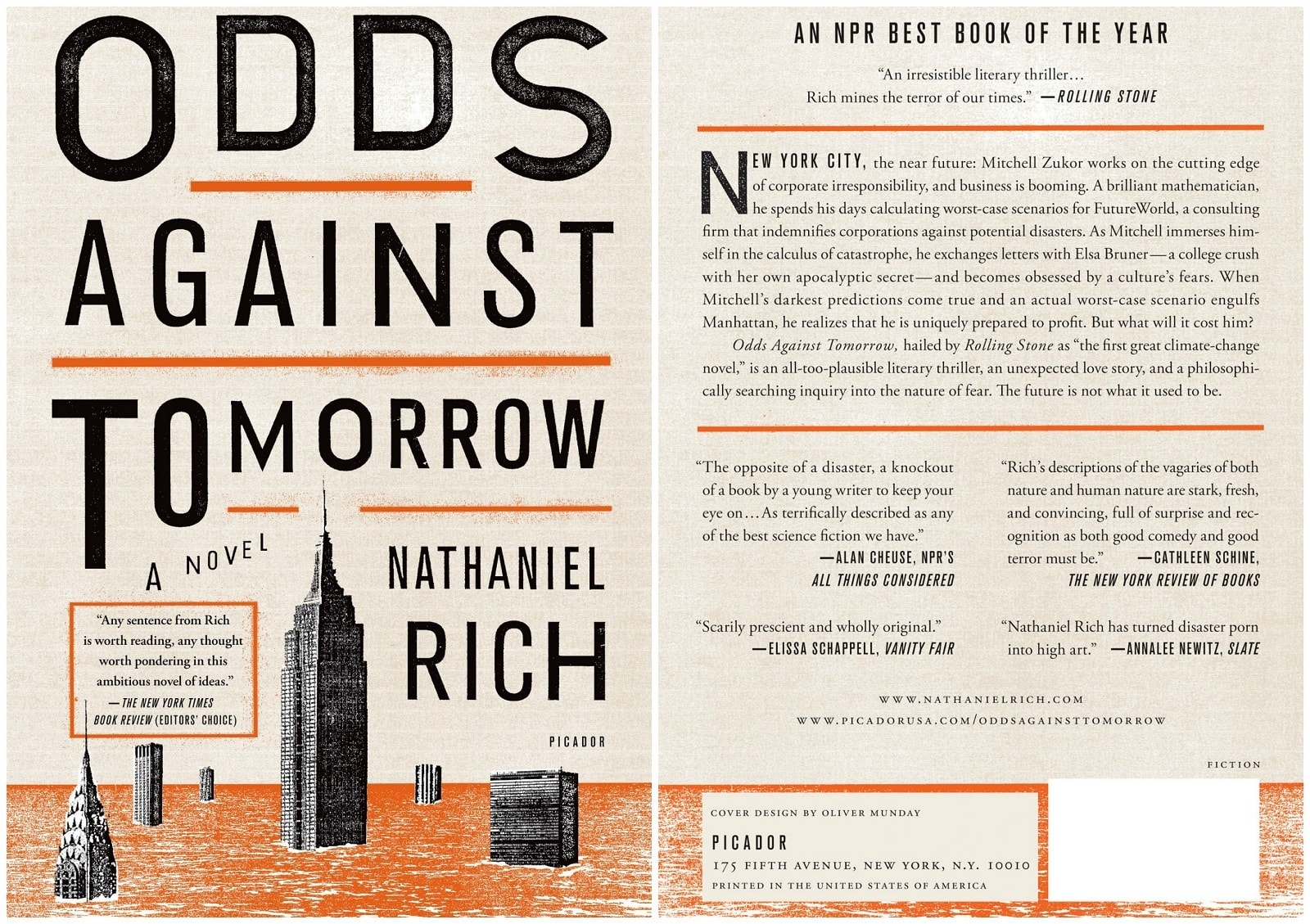 That book made Rich one of the young and rising stars of climate fiction, a new genre that went viral with the new century. This is a novel I read with great pleasure when it came out, a not-to-be-missed thriller with unexpected twists and turns that will bring home what it feels like when your town is flooded (in this case, New York).