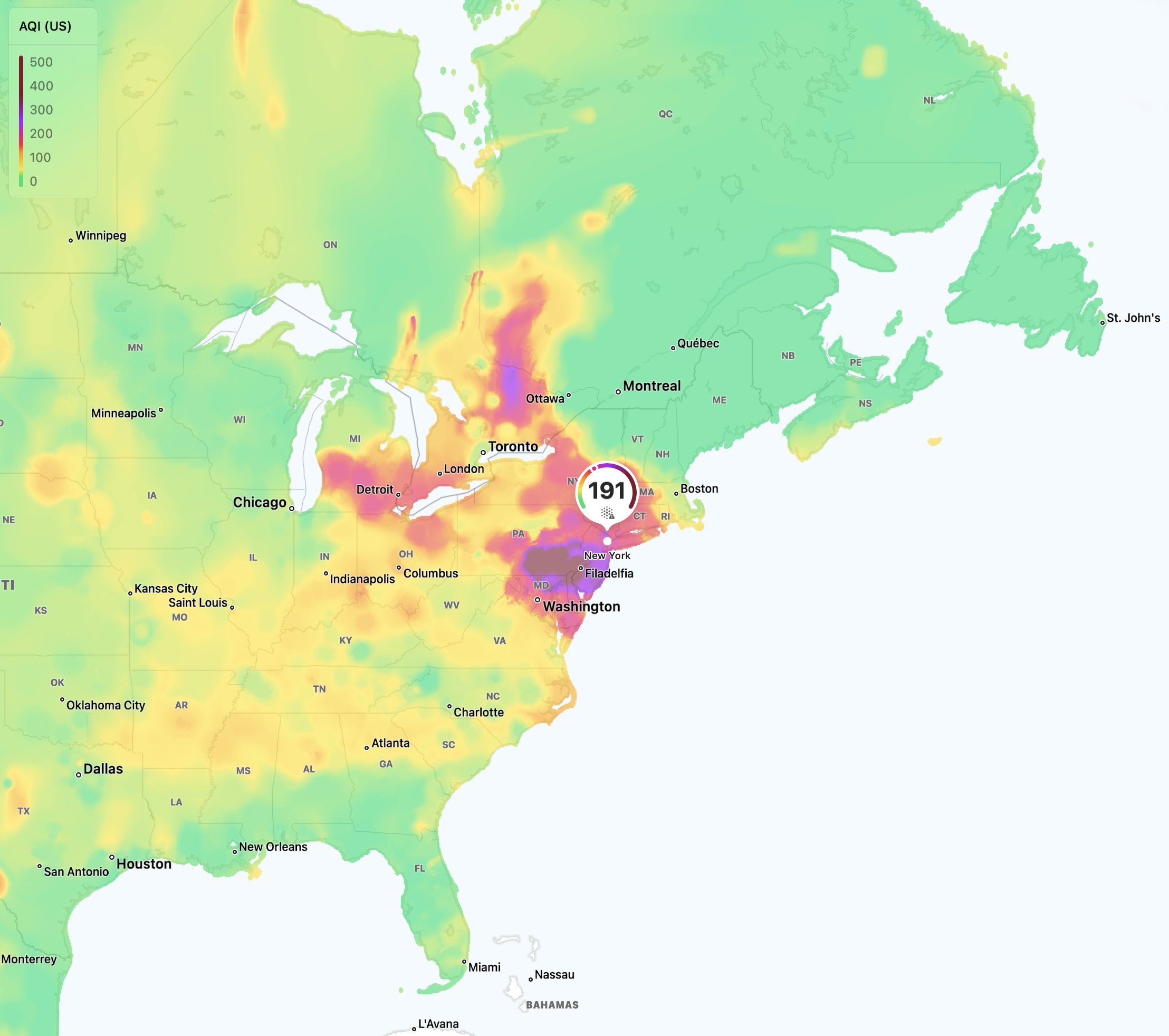 People are recommended to avoid going outdoors. In New York, the government has started to distribute N95 masks to the population. Unfortunately, with no rain expected at least until next week, there is a little chance for air quality improvement over the weekend.