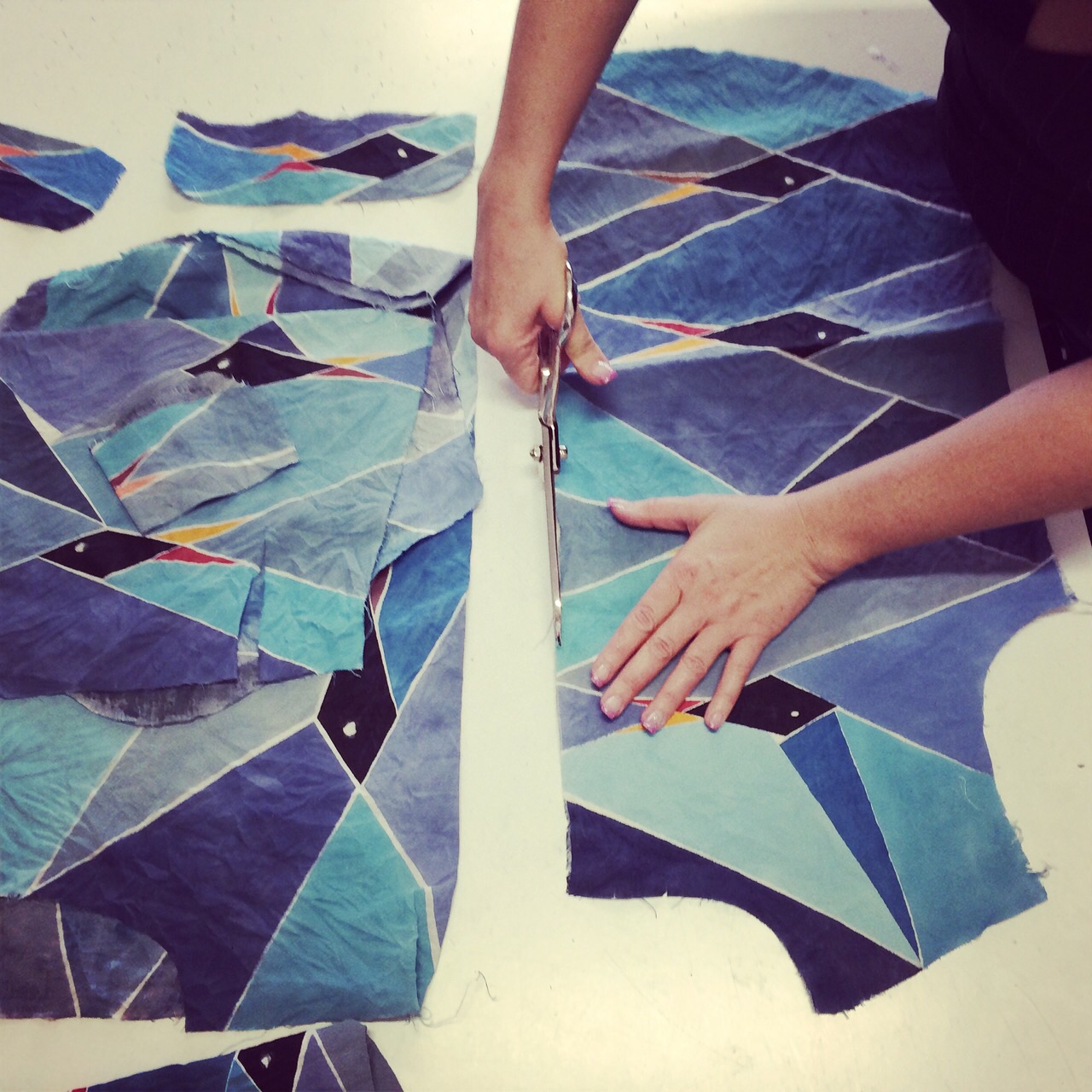 A: Because geometric and colorful forms create a feeling of a form of chaos within rules. I love colors and I like to use and mix all of them in my work. But my nature is also rather orderly. I like to play with geometric schemes mixing them with the freedom of colors. With geometry you can create infinite combinations of shapes. From a couple of lines you can make a thousand things. Figurative designs on the other hand, represent something that already exists. The imagination to make abstract figurative designs, such as the ones I made when I was a child, are difficult to create as an adult. As children we still have the capacity to be extremely creative figuratively. This quality goes lost as we grow up. So I chose to use geometry, which corresponded more to my creative expression, to conceive my designs.