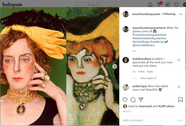 The Rijksmuseum in Amsterdam and Instagram accounts such as the Dutch Tussen Kunst & Quarantaine (“between art and quarantine”) are notable in their innovations to engage.