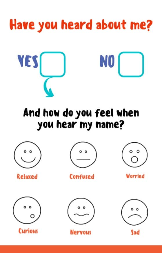 Then it asks the child to draw his/her own reaction on a blank face: