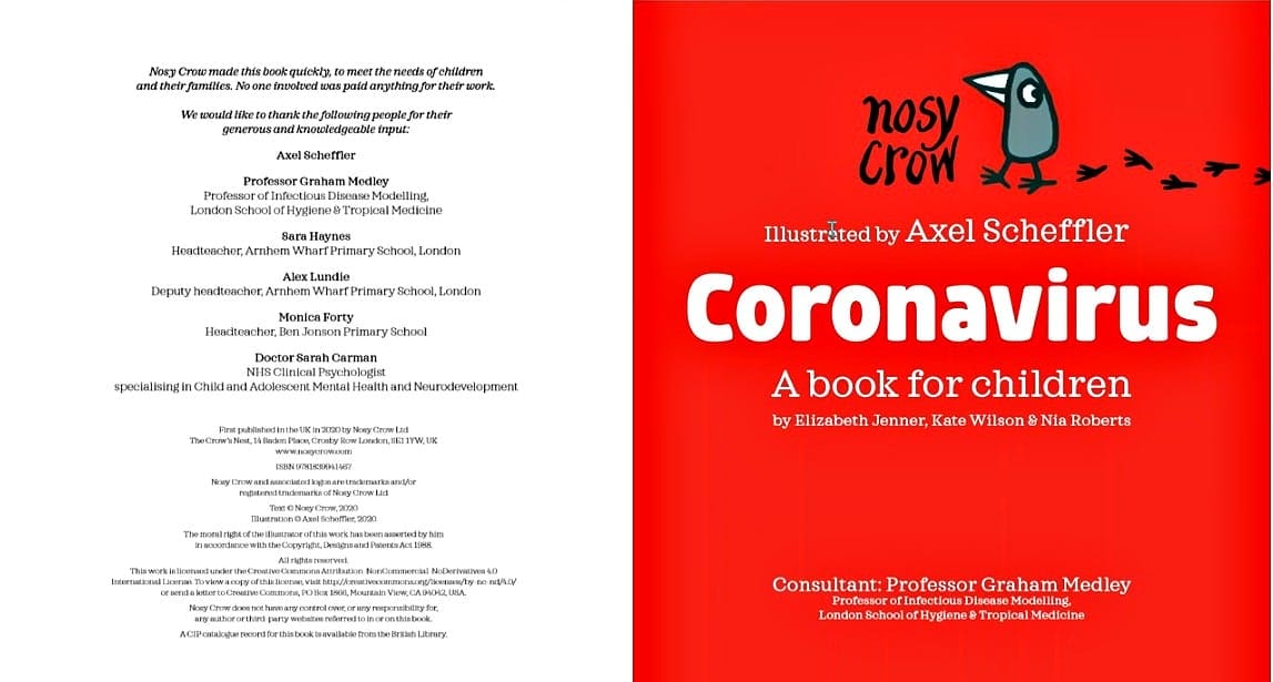 This is a totally different book; aimed at older children, it provides complete and reliable information about the virus, how to fight it, what to expect. It was put together very fast by experts in the field of education and health, with, as noted on the cover page, nobody getting paid for their work: