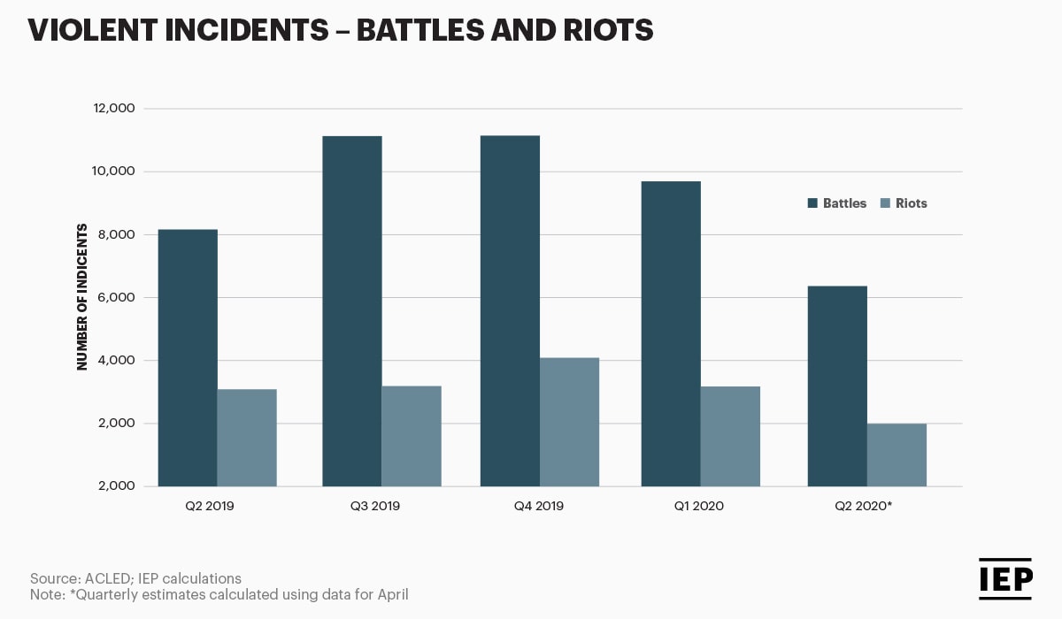 The subsequent measures taken against the pandemic by countries has at the same time mitigated and fired up massive unrest in various places. The decade long trend of increasing protests, disturbances and general strikes is more likely to be exacerbated as the economic downturn intensifies and people get more familiar with the pandemic.
