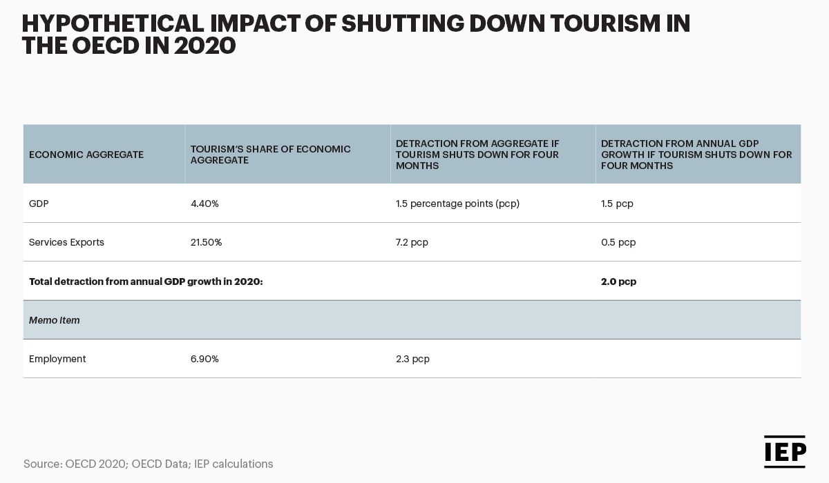 There has been a severe decline in tourism with international air flights decreasing by more than 90% in some countries. According to OECD tourism represents 4.4% of GDP and 21.5% of service exports among its Member States. Only 4 months without tourism would undermine 2% points of OECD annual GDP increase. This implies that if the OECD ‘s average GDP growth in 2020 were expected to reach 2.3% as in 2018, the decline in international tourism on its own would be enough to almost negate this development.