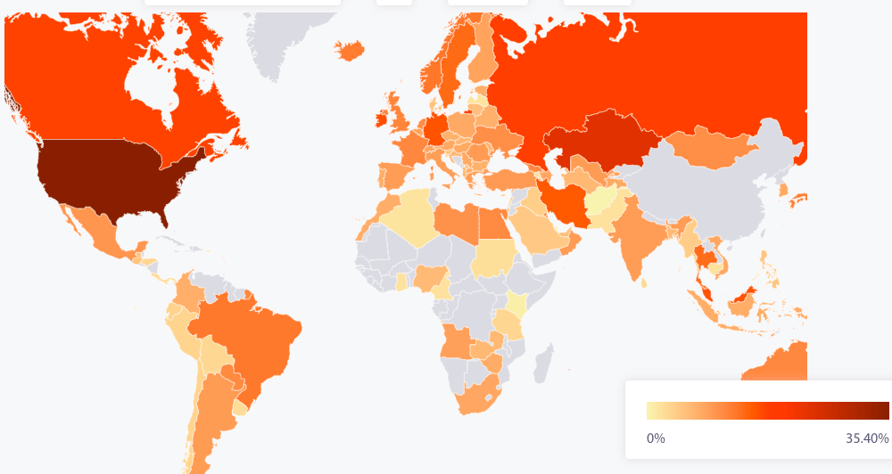 A closer look into this mass exodus can be observed when comparing two maps from Cambridge Bitcoin Electricity Consumption Index. In the first map (February 2020), China represented 72.98% of total mining (or ‘hash’) rate. In the second map (August 2021) we can observe the drastic movement in mining operations moving completely away from China into the aforementioned countries.