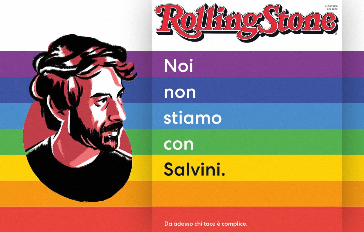 Rolling Stone Magazine: The cover reads “We are not with Salvini – from now on, whoever remains silent is an accomplice” An article in the form of an interview, explains the cover (here) making the protest explicit, recalling that with silence, there is a real risk that a dictatorship or racist laws could be installed.