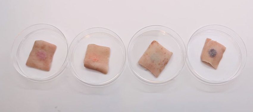 In the Photo: The D-Abyss applied on pig skin for research. Photo Credit: Dr. Nan Jiang.